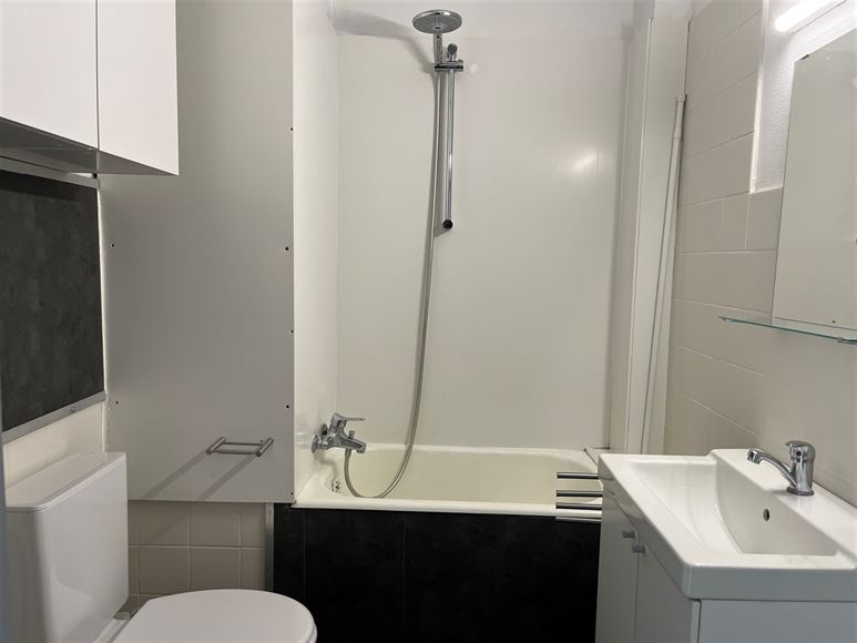 Badkamer omvat : toilet, lavabo met meubel, zitbad met douchestang & aansluiting wasmachine