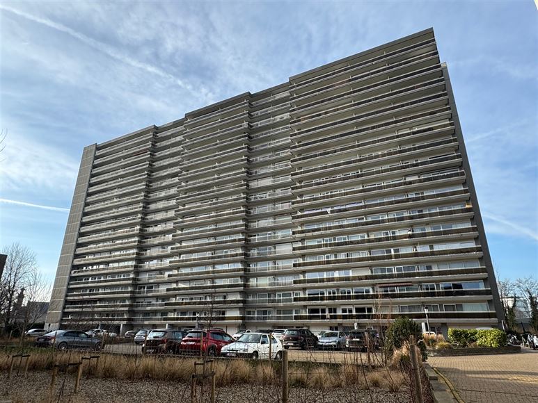 Appartement op de 4de verdieping met inkomhal met 3 deurs-vestiairekast, woonkamer, ingerichte keuken, 1 slaapkamer, berging en ruim terras.
